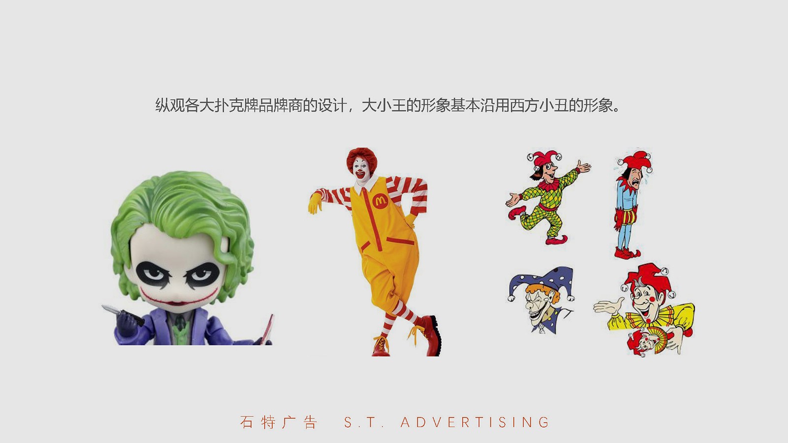 撲克牌中的兩張大王小王,即小丑牌,外文名The clown card,兩個小丑代表是太陽和月亮,是一副撲克中最特殊的存在。在撲克牌剛剛傳入美國的時候還沒有小丑牌。發售撲克的廠家會在一副牌中額外放幾張和撲克質地一樣的廣告牌,以Joker作為與廣告品或文字的互動形象出現。這樣慢慢發展,在斗地主中,或者一些游戲中,王牌成為了任意牌。