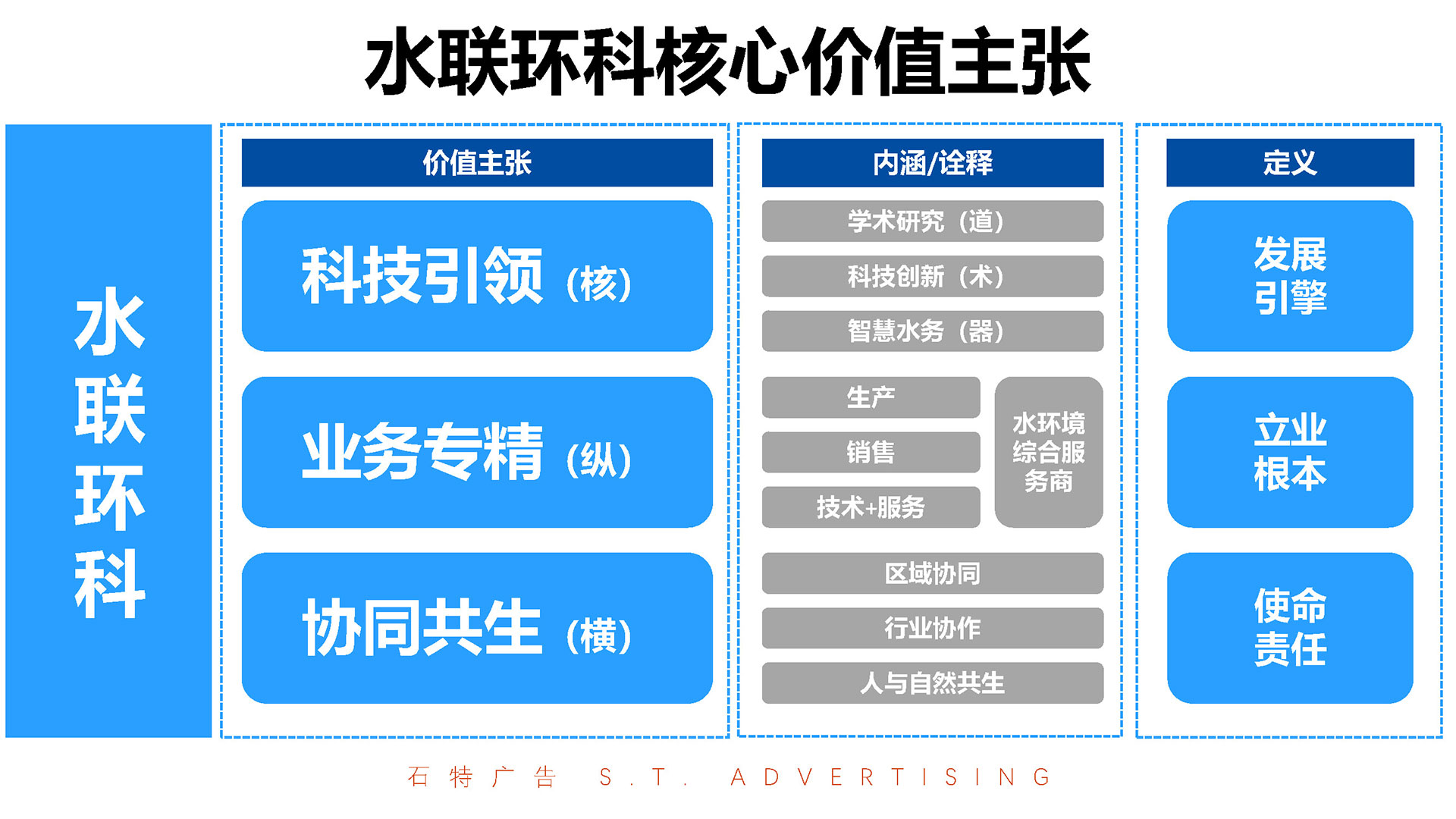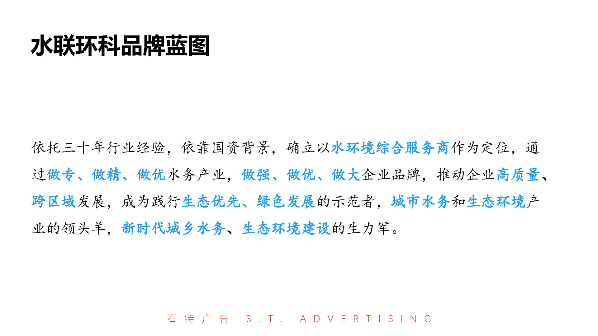 浙江水聯環科集團有限公司作為紹興市公用事業集團直屬的國有控股企業,深耕供排水物資經營、不銹鋼復合管生產及設備集成總包領域20余年,銷售網絡覆蓋省內外,近3年年均銷售收入達6.5億元,并獲評浙江省守合同重信用3A級單位、國家高新技術企業等榮譽。面對行業競爭加劇與可持續發展需求,石特廣告策劃團隊以“科技賦能水務,綠色驅動未來”為核心理念,為其量身定制品牌全案升級方案,涵蓋調研分析、品牌定位、品牌DNA重構、廣告語提煉、VI視覺識別系統設計及宣傳畫冊策劃,助力企業從傳統制造向科技化、綠色化品牌轉型,強化行業標桿地位。