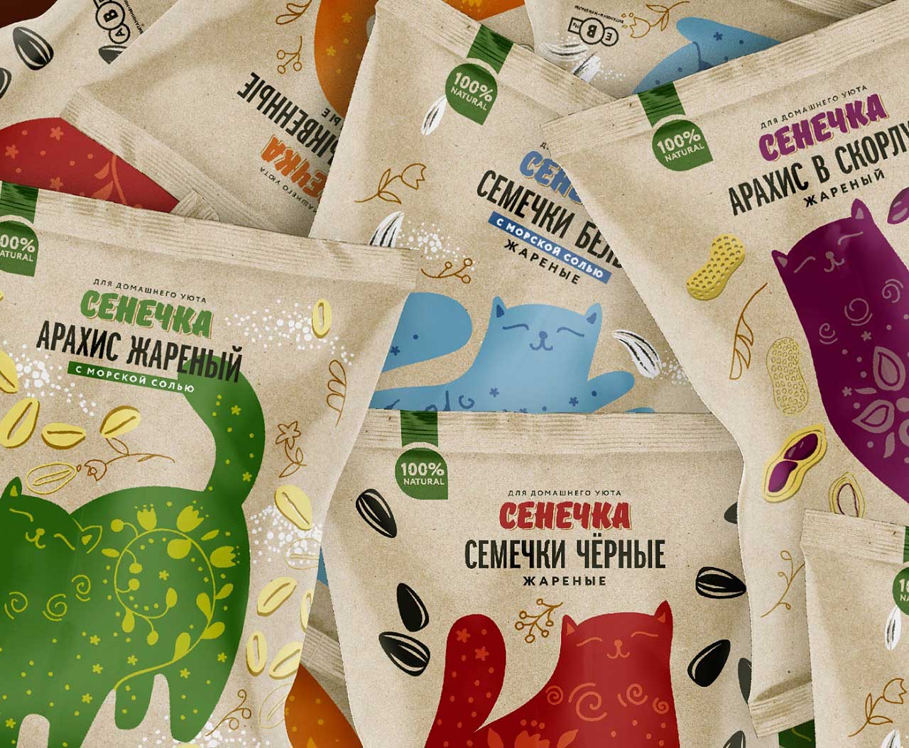 這款貓糧的包裝設計采用傳統的俄羅斯風格插圖,將有助于避免競品之間的混淆,將會讓消費者的眼睛在商店的貨架上更容易找見你。貓糧的包裝設計不就是這個用途嗎?