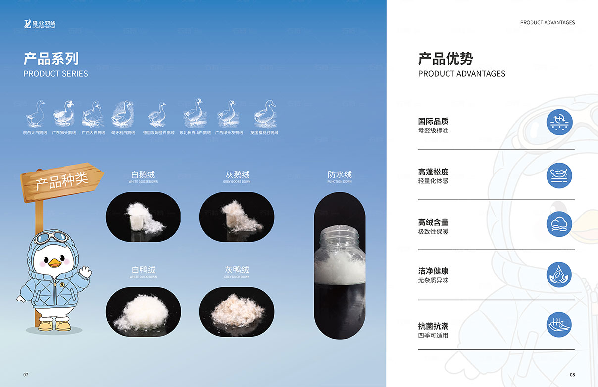 設(shè)計(jì)階段,團(tuán)隊(duì)以 “簡(jiǎn)約大氣、凸顯質(zhì)感” 為原則,將羽絨制品的柔軟屬性與企業(yè)的專業(yè)形象相融合。在色彩選擇上,采用淺色系為主色調(diào),搭配品牌特色色作為點(diǎn)綴,營造舒適、高端的視覺氛圍;在版式設(shè)計(jì)上,注重信息層級(jí)的清晰呈現(xiàn),通過合理的留白、圖文配比,讓讀者能夠輕松獲取關(guān)鍵信息,同時(shí)融入羽絨紋理、羽毛等元素作為設(shè)計(jì)細(xì)節(jié),強(qiáng)化品牌辨識(shí)度。