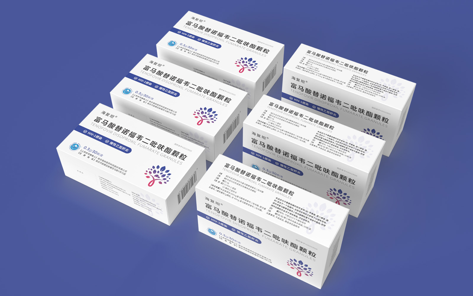 主視覺由HIV標識、肝、大樹、雙手結合設計呈大樹形主圖案。HIV》標識\肝臟標識突出產品適應癥,大樹/樹葉寓意健康、生命和安全,象征成長新生的希望之樹。雙手捧著代表呵護與關愛,象征著企業以人為本/以健康關愛為本。主視覺采用冷暖色漸變,藍色醫療屬性強烈,代表醫療健康、冷靜,粉紅色既有主治癥狀HIV標識及肝部的色彩表現同時也代表著疼痛深藍到粉紅的處理方式.表現一種正在緩解及治療病狀的過程。