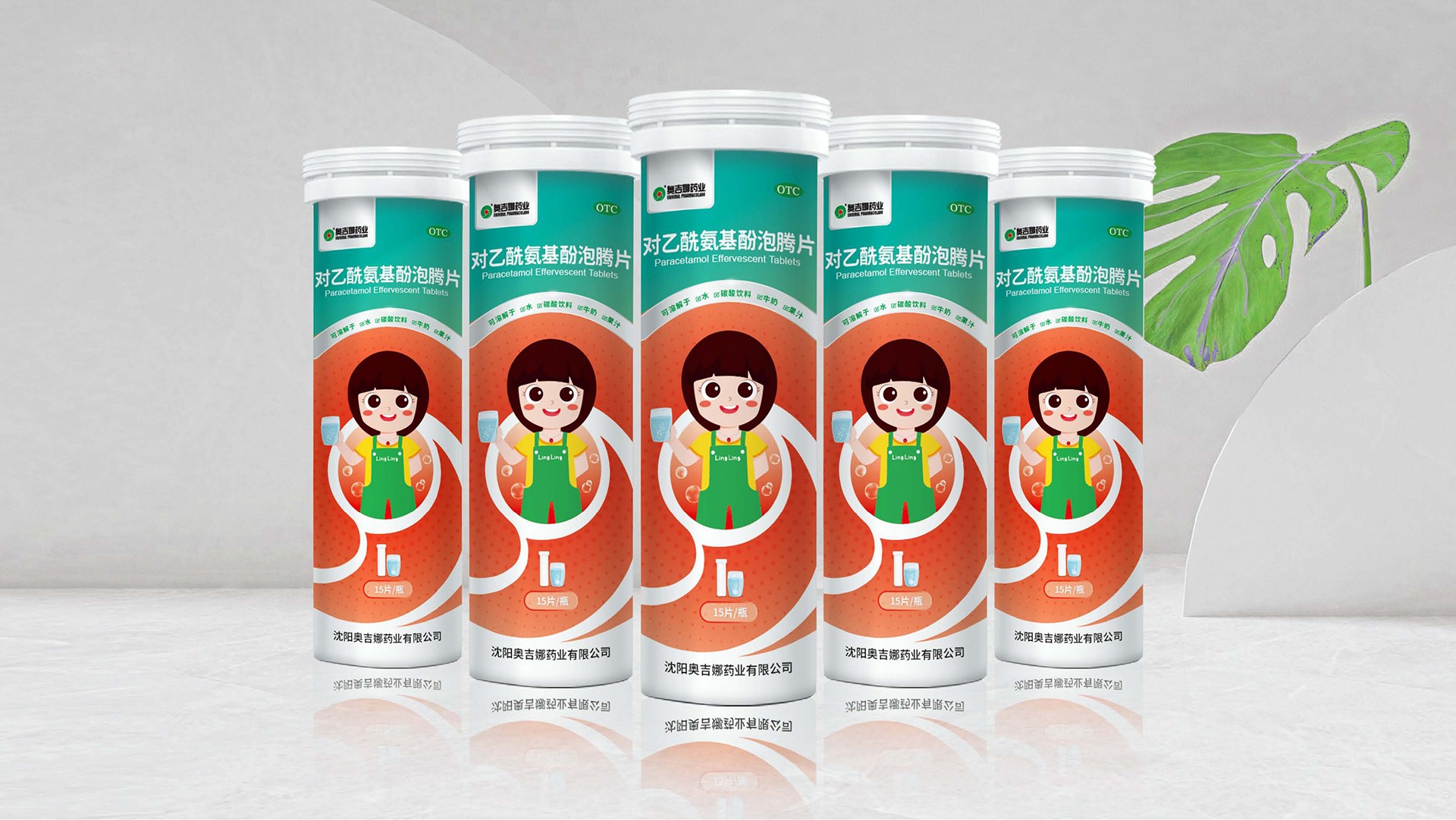 石特廣告在為對乙酰氨基酚泡騰片設計包裝時,從藥品形態、產品使用人群等方面思考主畫面設計。泡騰片浸入液體,發生泡騰反應狀如沸騰,主畫面描繪藥物揮發形態,展現溶于液體的特性,畫面生動且具趣味性,能夠吸引目標使用人群(兒童)。在色彩設計上,考慮到色彩本身特性以及藥品相關使用規則,設計師將藍綠漸變結合橙黃漸變,作為包裝主要顏色,藍色與綠色本身有著健康、活力的含義;橙黃由深到淺的過程中融入粒子元素,有退熱之意,很好展現了產品的功能屬性。