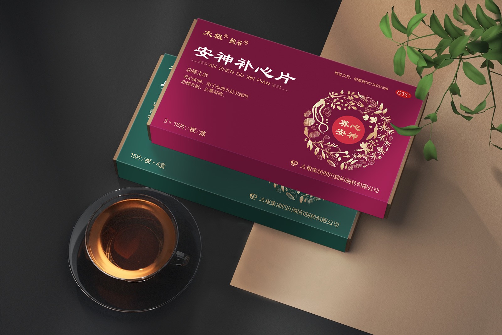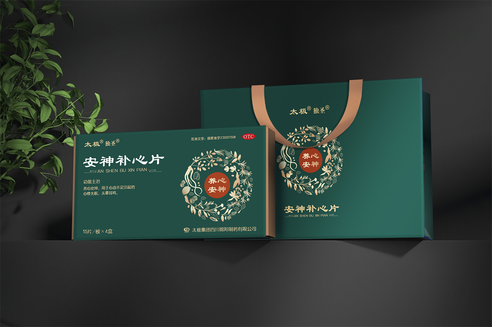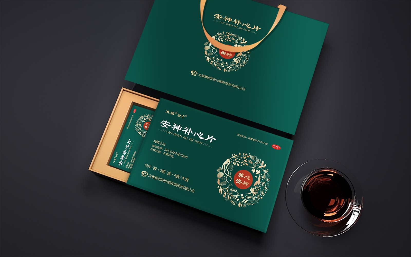 畫面以傳統色為主基調,傳統色彩強烈,古方氣息濃郁,同時整體版式簡潔大方;畫面中,+味藥材環繞,代表取道地藥材之精華,將中藥以簡形插畫表現出來,藥材靈動、真實、原生態的形象既增加設計之美感,又凸顯產品之珍貴,更彰顯企業與品牌之底蘊。