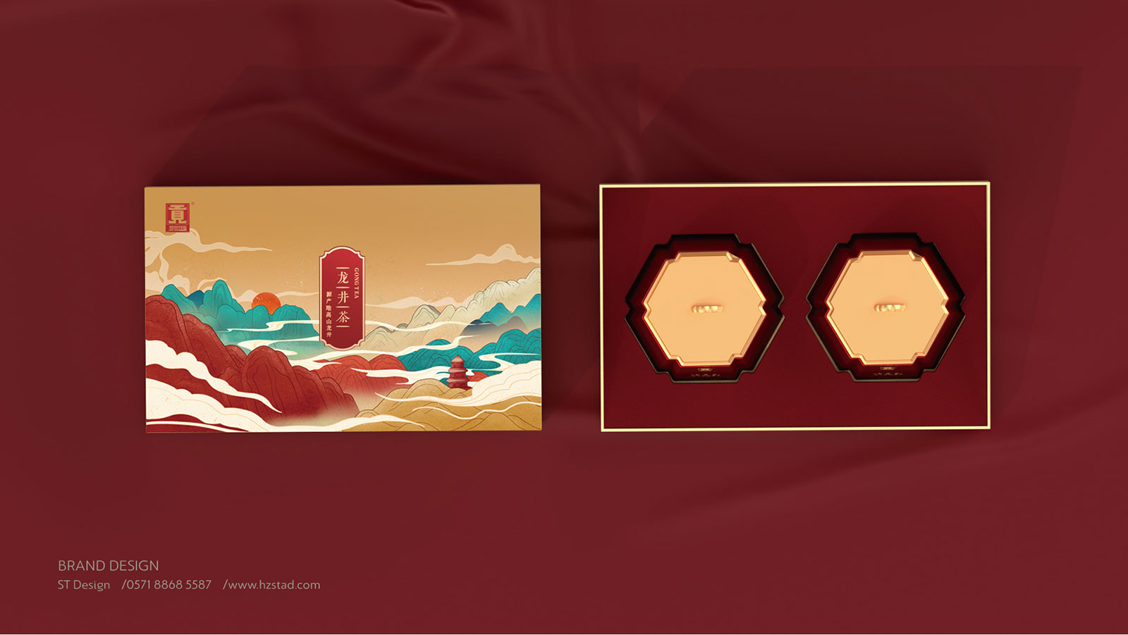 根據產品線需要,貢牌龍井亟待需要更新補充茶葉禮盒包裝設計,石特接到任務后首先參看同檔次、同品種或者相同價值定位的其他包裝;深入研究完其他產品的包裝設計后,確立了新包裝上建立區隔點和尋找突破點與強化點!