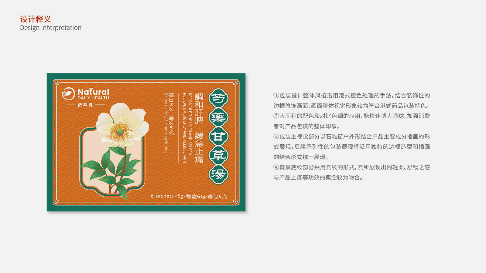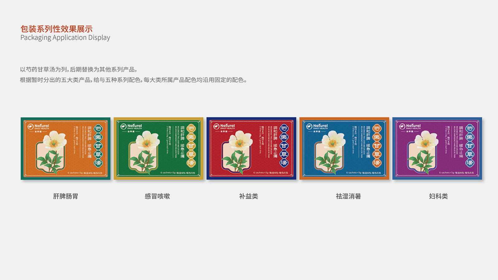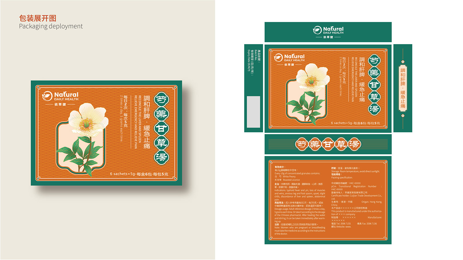 十全大補湯,六一散,四君子湯,四物湯,失笑散,芍藥甘草湯,麻杏甘石湯,小承氣湯,甘麥大棗湯,銀翹散,四逆散,五皮飲,止嗽散,平胃散,左歸丸,桑菊飲,柴胡疏肝湯,八正散,沙參麥冬湯,辛夷清肺湯,茵陳蒿湯,六君子湯,少腹逐瘀湯,五苓散,苓桂術甘湯,桂枝茯苓湯,麻黃湯,黃芪桂枝五物湯,消風散,黃連解毒湯包裝設計