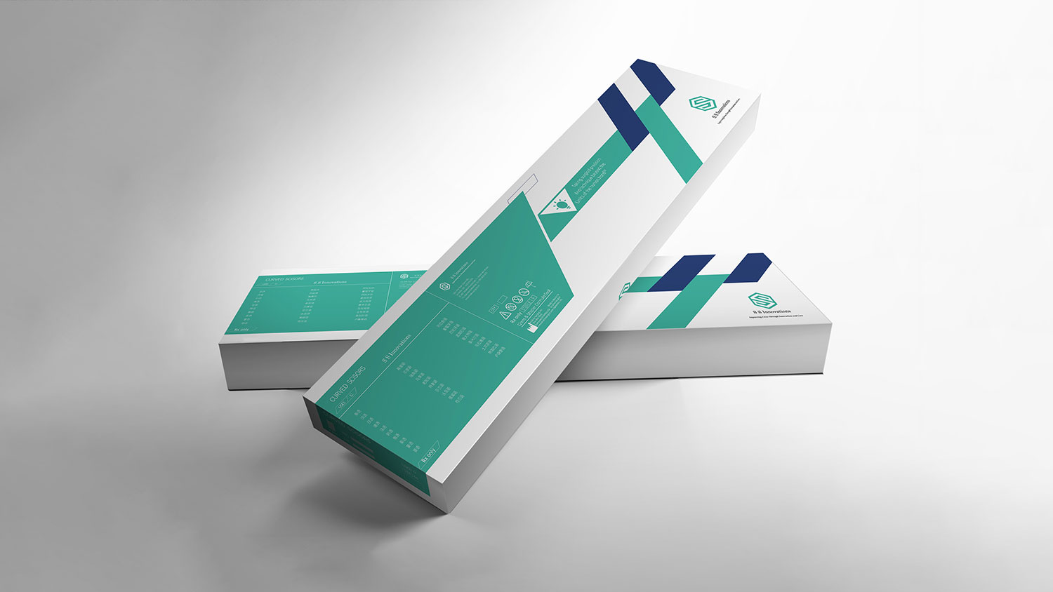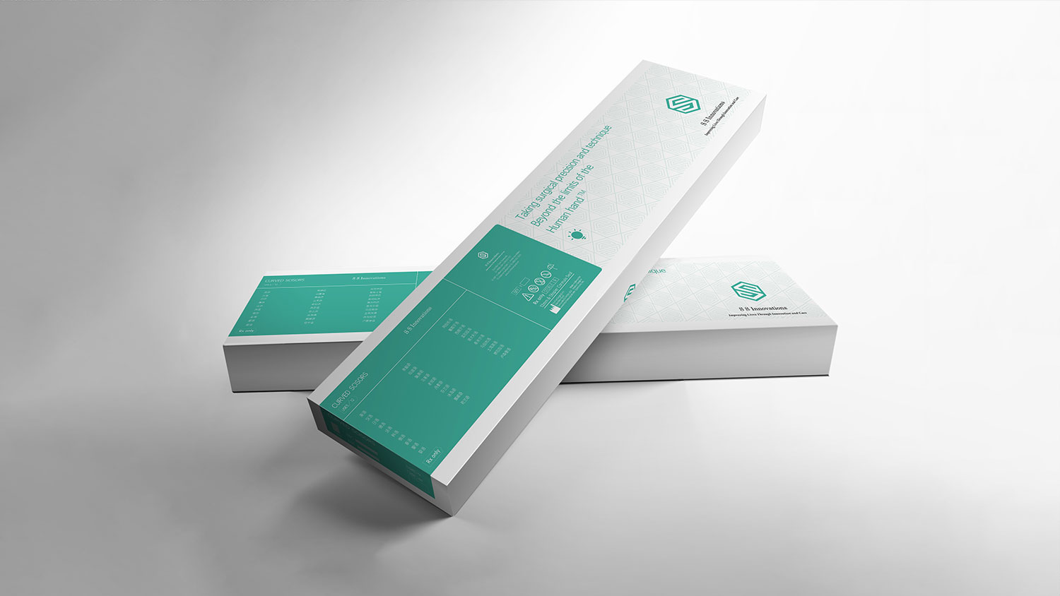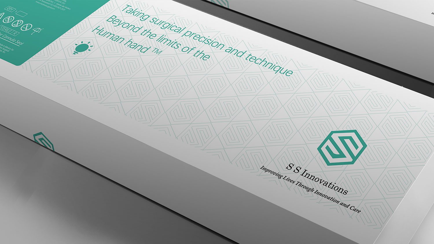 石特根據其品牌的產品特點及品牌理念,為其進行機器人醫療機械包裝設計。整體以品牌主色調藍綠色為主,白色做基調,利用品牌LOGO“S”的直角形狀與六邊形相結合,描繪輪廓,可形成大面積的淺色底紋,加強品牌視覺效果,體現技術嚴謹且有序;六邊形組成間的三角形看似平平無奇,眾所周知三角形是最穩固的形狀,體現制造技術安全穩定,整體簡約而不簡單。