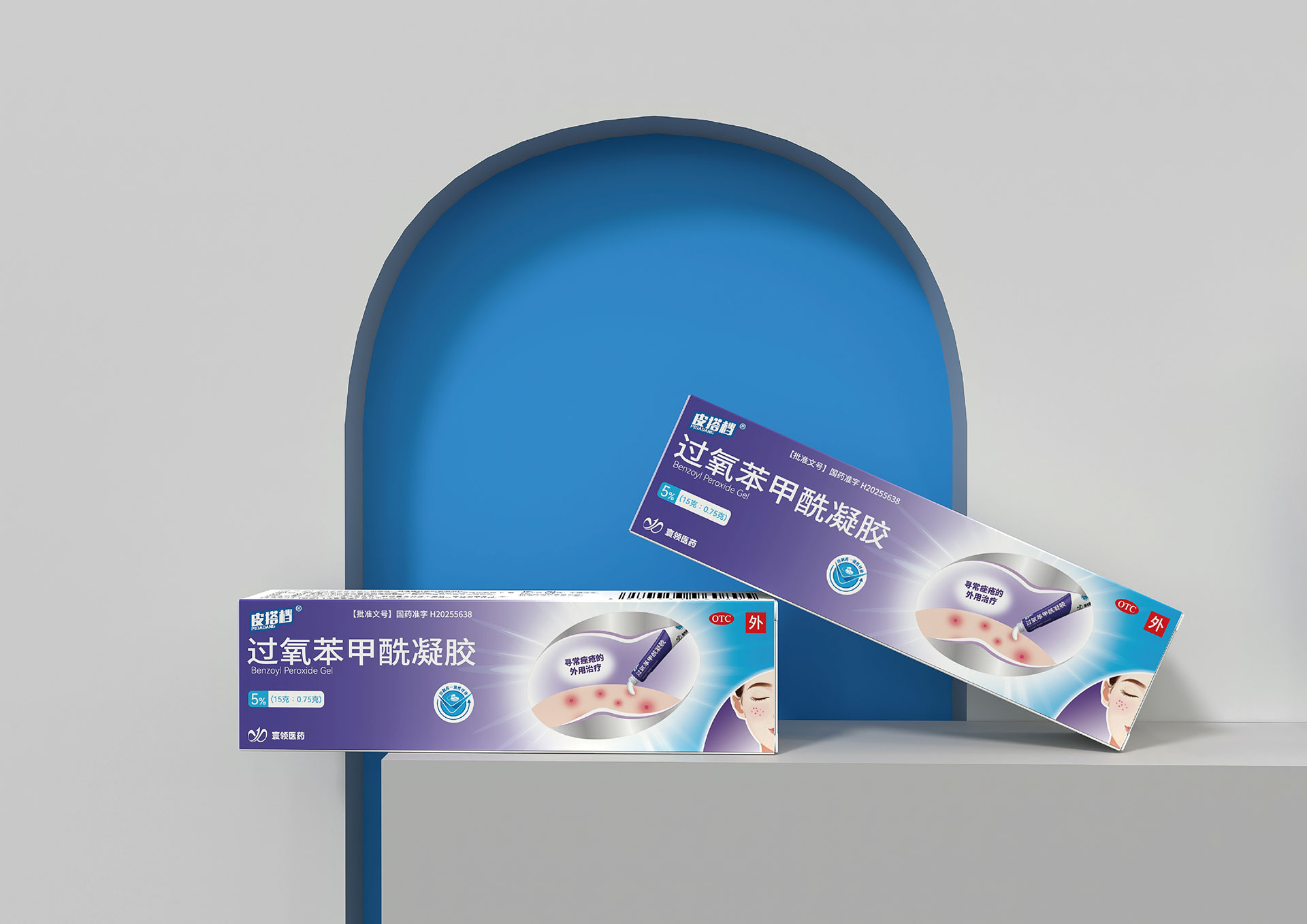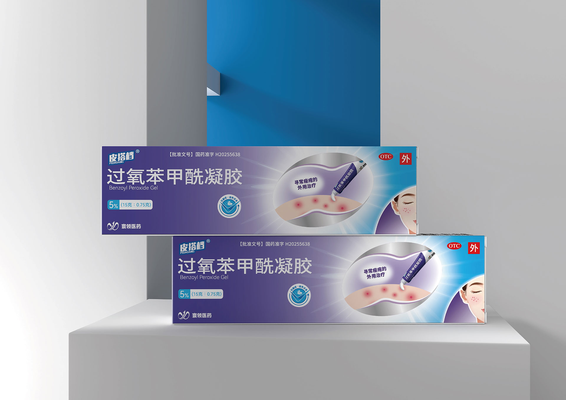• 過氧苯甲酰凝膠系列:以警示黃為主識別色,強調強效殺菌的功能特性。