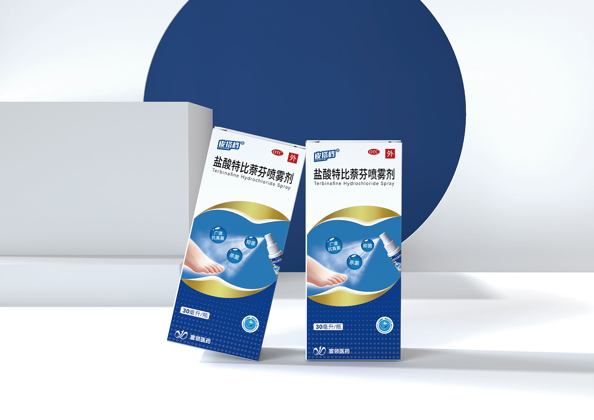 • 鹽酸特比萘芬噴霧劑系列:以活力橙為主識別色,象征抗真菌的強效與活力。