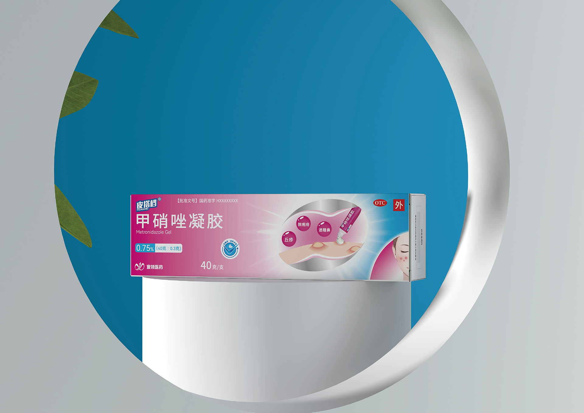 • 甲硝唑凝膠小盒:尺寸145×25×40mm,推薦燙銀工藝,銀色光澤呼應“科技藍”,提升專業精致感。